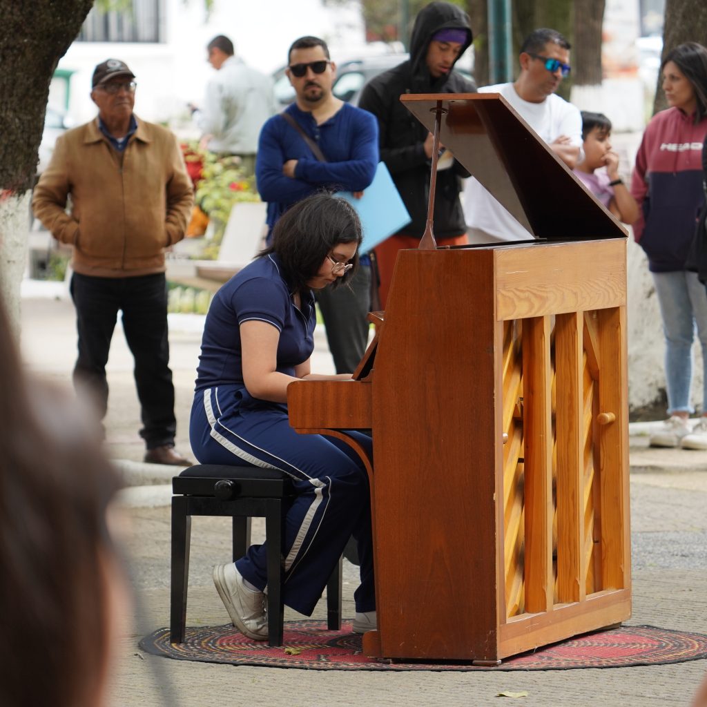 La intervención musical permitió que cualquier persona pudiera acercarse al piano y tocar una melodía, gesto que fue ampliamente valorado por quienes transitaban por el lugar. Algunos interpretaron piezas clásicas, otras canciones populares, mientras que los niños sorprendieron con interpretaciones llenas de frescura y entusiasmo. Familias, transeúntes, turistas y estudiantes se reunieron de manera natural, formando un público diverso y espontáneo que celebró el talento local y la iniciativa cultural.