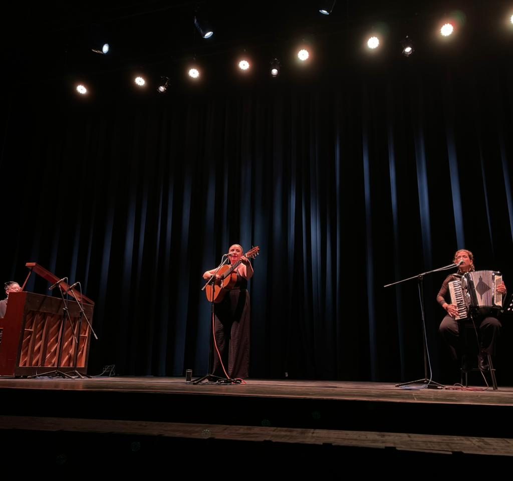 En Constitución, Belencha se presentó en formato trío, acompañada por Dominga Corral en acordeón y Gabriela Cáceres en teclado, ofreciendo un repertorio que recorrió por tonadas, valses, tangos, milongas, foxtrot, cuecas y canciones latinoamericanas, junto a composiciones propias que fueron recibidas con especial entusiasmo. La atmósfera fue íntima y emotiva, marcada por el respeto y la complicidad del público.