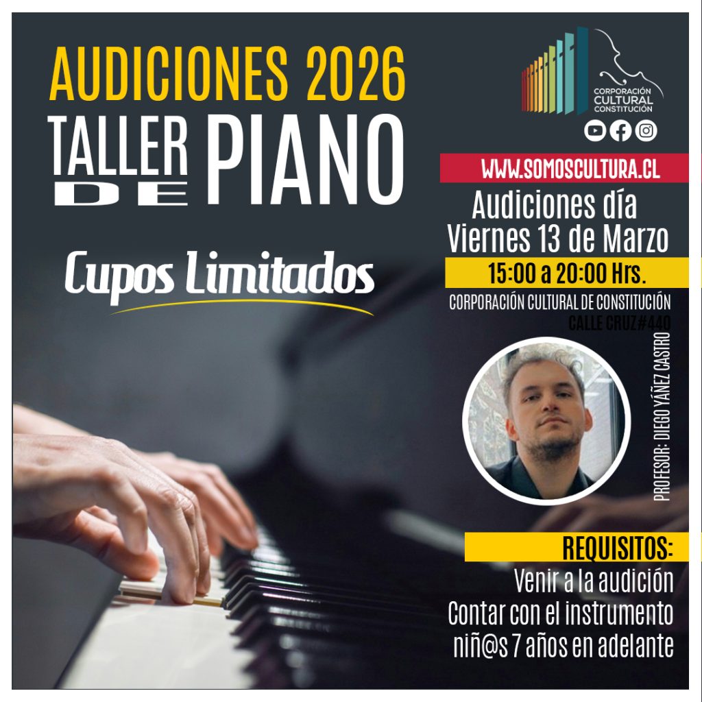 La Corporación Cultural y de Extensión de la Ilustre Municipalidad de Constitución tiene el agrado de invitar a toda la comunidad a participar en el proceso de inscripción para los Talleres Artísticos de la Temporada 2026.